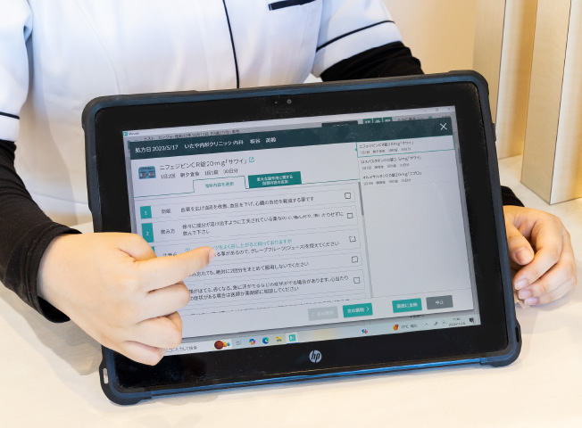 患者さんのためだけでなく、働くスタッフの利便性を高めるため、医療DXを推進しています。調剤など対物業務の効率化を図り、患者さんとの対話や在宅利用などにフォーカスできる体制を整えています。