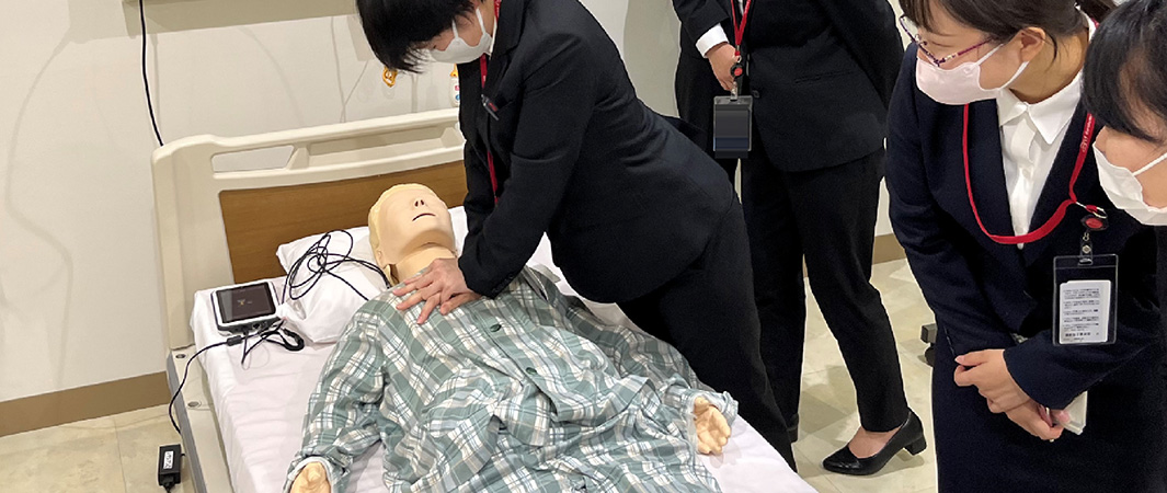 大手医療材料メーカーの総合医療研修施設にて、現場経験のある医療従事者の方々から医療現場での多職種業務を実際に体験しながら学ぶことができます。また、シミュレーションルームを利用した在宅医療のロールプレイを行い、在宅医療や多職種連携について学ぶプログラムも用意しています。