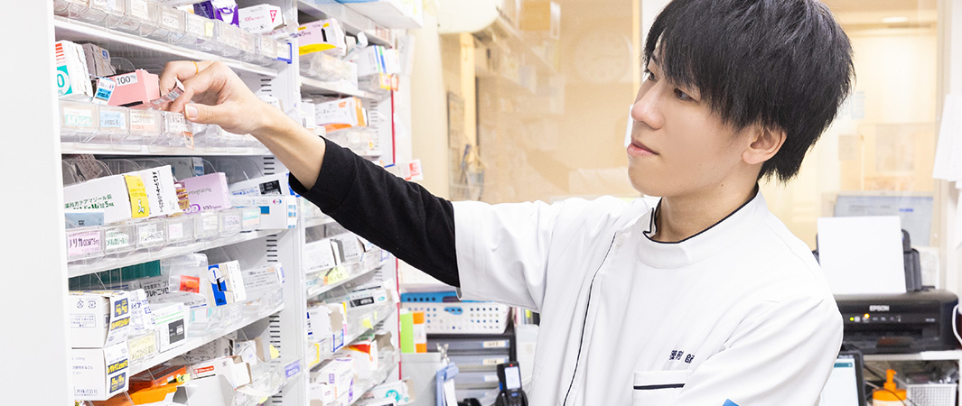 トラストファーマシーでは、薬剤師&管理栄養士の選定した食品やOTC(一般医薬品)の販売にも力を入れています。ただ、どんなに素晴らしい商品も、来局者さまに手にとってもらえないと意味がありません。来局者さまが気づき、興味をもってもらえるような商品陳列の知識を学びます。
