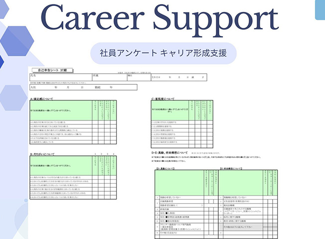 全社員に対して、今後の働き方やキャリアプランの希望について毎年アンケート調査を実施しています。店舗の上長などを介さず、人事のトップに直接希望を伝えることができる、風通しの良さを感じられる制度になります。