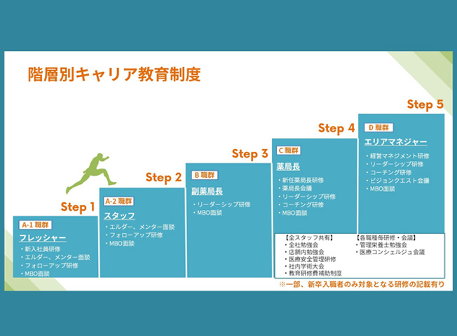 トラストファーマシーでは、全社員のスキルアップと同時に、社員一人ひとりが、その人らしく成長できる教育制度を整備しています。