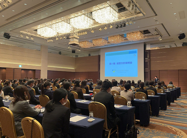 決算期ごとにトラストファーマシーの1年の歩みを全社員で振り返り、共有する場を設けています。社員一人ひとりが会社の方針を理解することで、一丸となって目標に取り組むことができます。