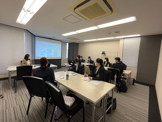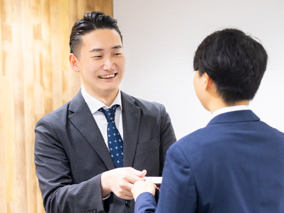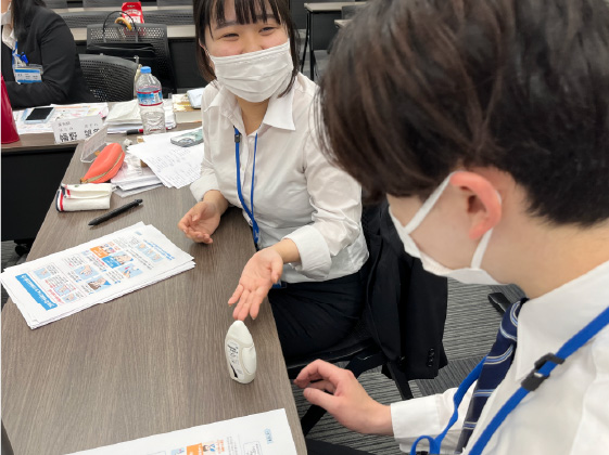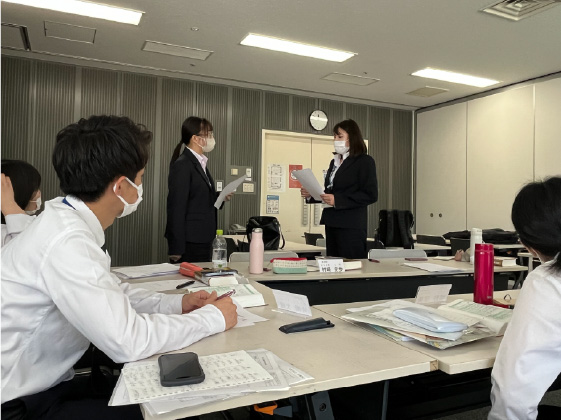 社内だけでなく外部企業の研修に参加し、専門のマナー講師から、名刺交換や電話対応など、現場で役立つ基本マナーを実践的に学びます。 他企業の新入社員と一緒に受ける合同形式で、自社だけでは得られない刺激と視野の広がりが得られます。他社の同期と接する中で社会人としての在り方を見つめ直し、企業人として誇れる自分になる第一歩を、確かなサポートのもとで踏み出せます。