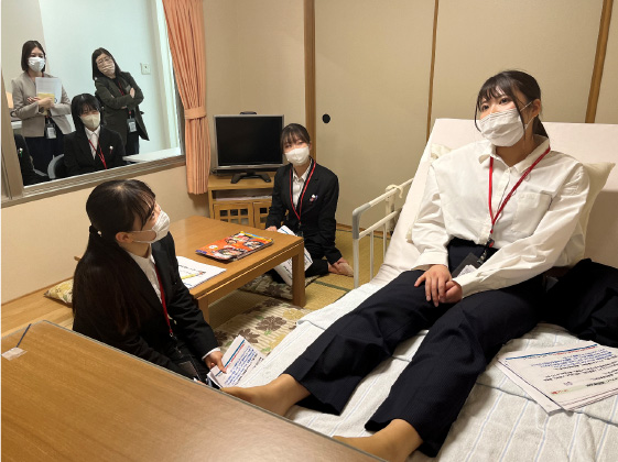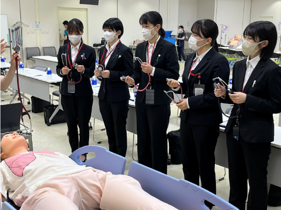 大手医療材料メーカーの総合医療研修施設にて、現場経験のある医療従事者の方々から医療現場での多職種業務を実際に体験しながら学ぶことができます。また、シミュレーションルームを利用した在宅医療のロールプレイを行い、在宅医療や多職種連携について学ぶプログラムも用意しています。